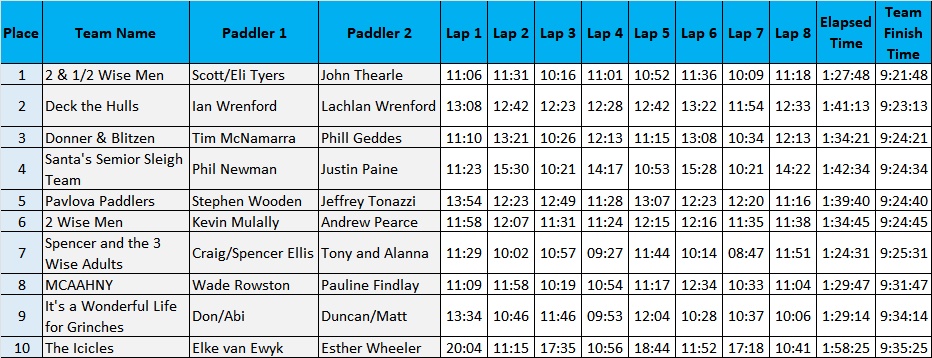 'Twas time to enjoy a fun morning of paddling, getting a great workout and celebrating the festive season. The PDF report from the day is available above (including a recap on the 2x2 paddling season).