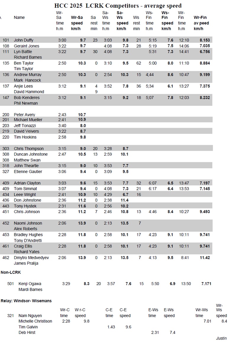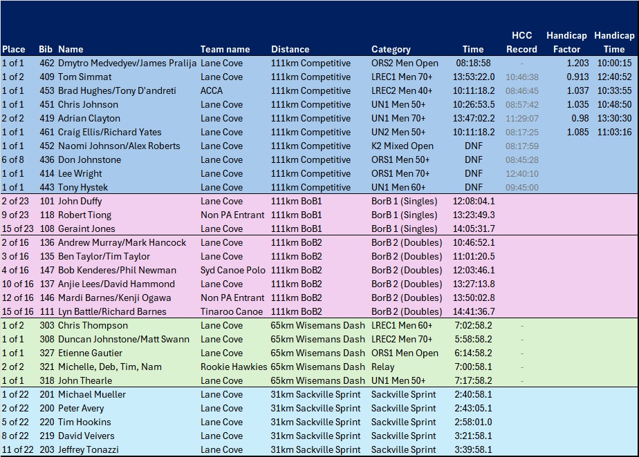 The table below shows the results for LCRK Paddlers - sorted by 111km vs Dash vs Sprint distance