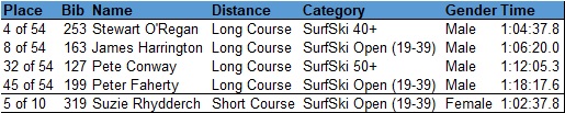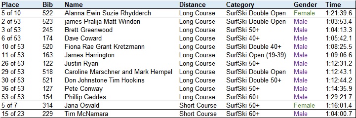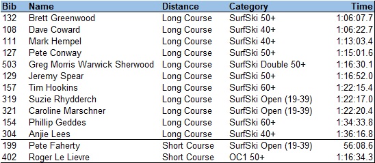 And well done to Ella Beere 1:00:35 and Todd Cunningham 54:13 first female and male short course surf ski.