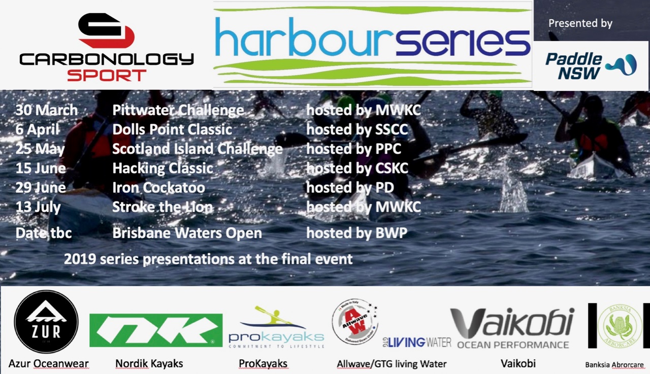 This is the series of paddles organised by the PaddleNSW Open Water Committee on various open waters in the harbours and bays of Sydney. There are 7 events in the 2019 Harbour Series. This year races are being hosted by various kayak clubs.