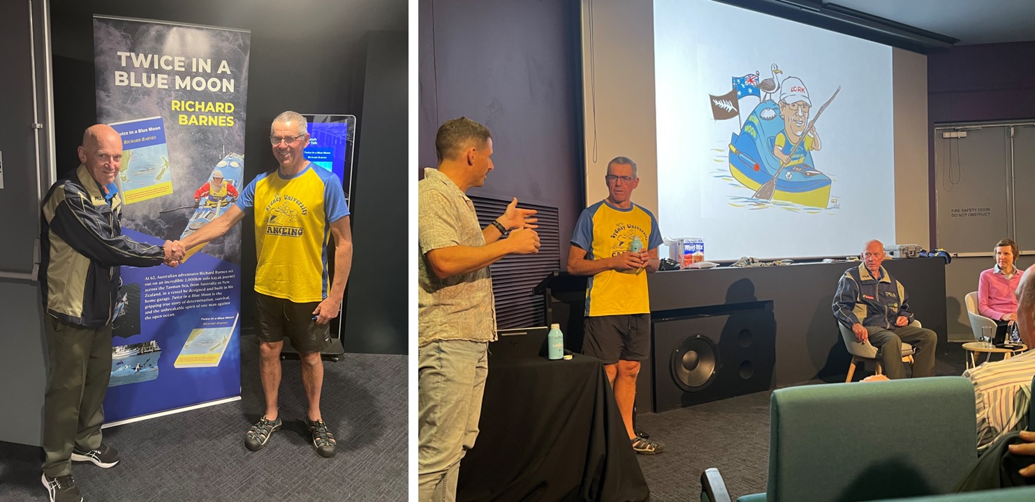 Sat 25 October marked the official launch of 'Twice in a Blue Moon' - recounting Richard Barnes crossing of the Tasman Sea by kayak.