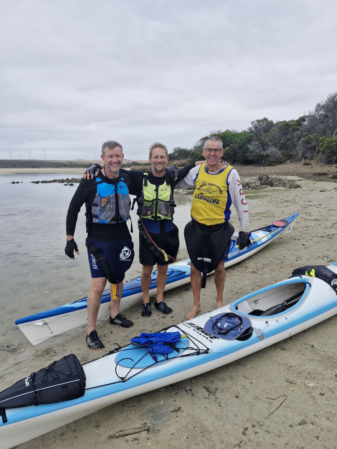 On Tue 17 Feb, an early start saw them set out on the ~60km paddle to Roydon Island (about 1km to the west of Flinders Island) where a two night layover was required due to windy conditions.