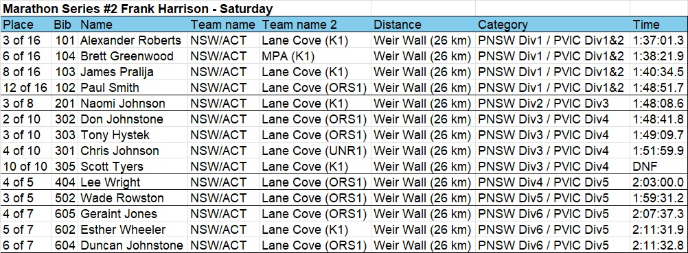 - Marathon Series results (via webscorer)