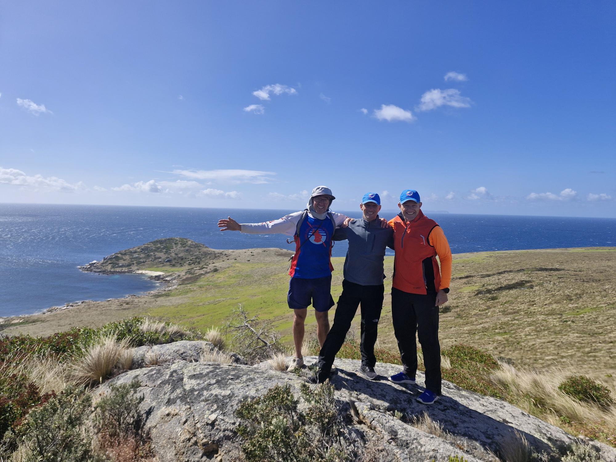 Above: Richard, Mark and Muzza scale Hogan Island peak