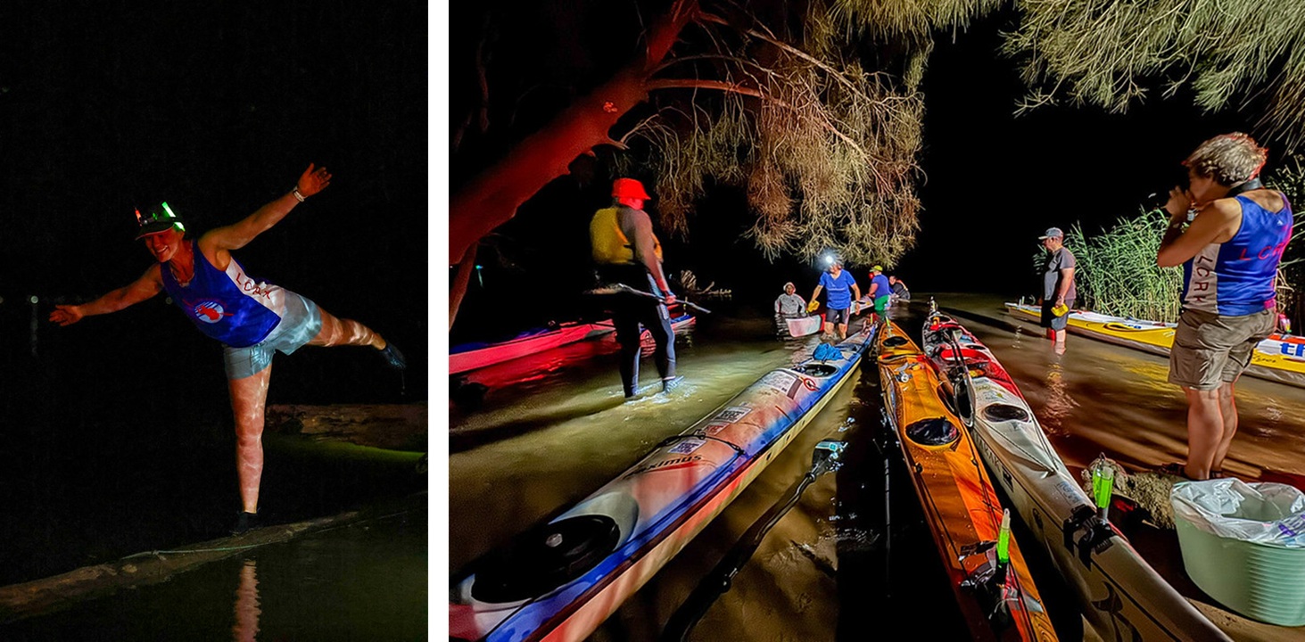 As I headed back out onto the river, I witnessed some spectacular shooting stars and then watched the sky get gradually lighter as dawn approached. While exhausted at this point, I at least felt that I was counting down the kms. However, as I rounded Bar Point and again within sight of the finish line, I went for two more swims. I’d like to say the waves were three feet high (they weren’t), but I think any size ripple had the potential to tip me over at this point. I was very glad I attended the self-rescue course earlier this year!! The most important lesson I remembered, was to take a breather after getting my body over the kayak before attempting to get my legs on. After umpteen attempts to remount without simply flipping over the opposite side, I was tempted to just drift with the tide, hanging onto the side of my kayak for the final 500m. I decided this would be a bit undignified, so with one final herculean effort (in my opinion) I managed to get back on board. Cue the sun rose over the horizon!